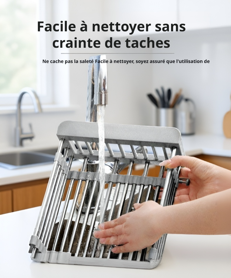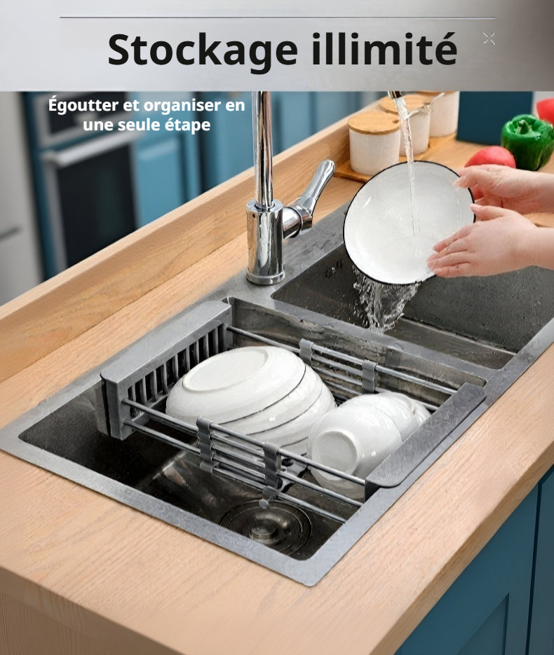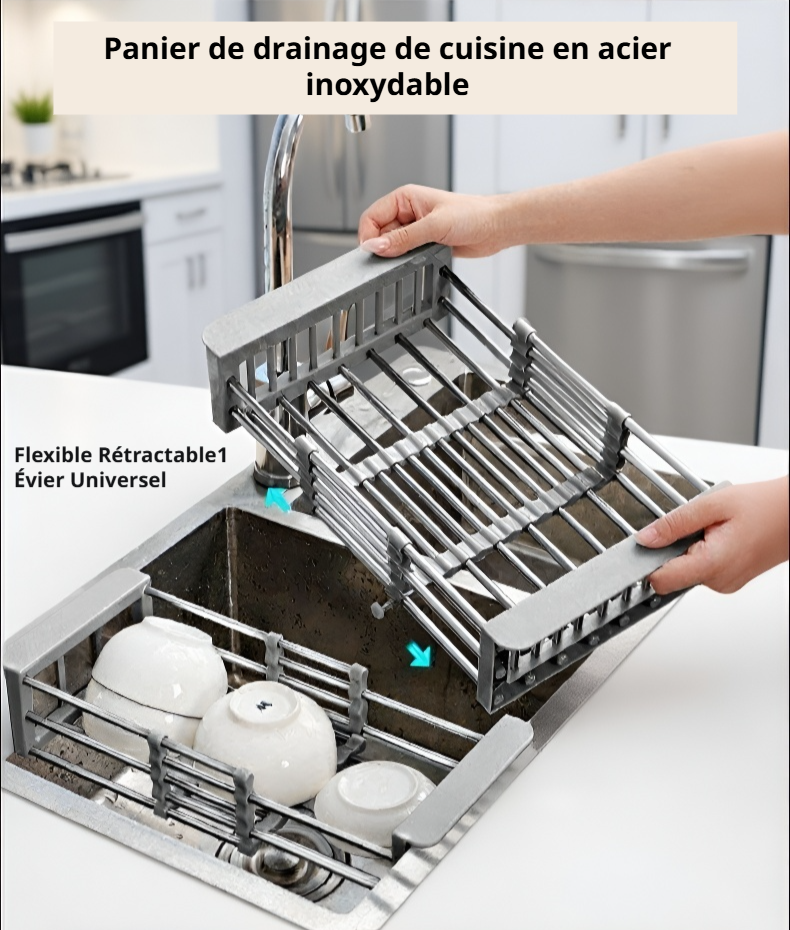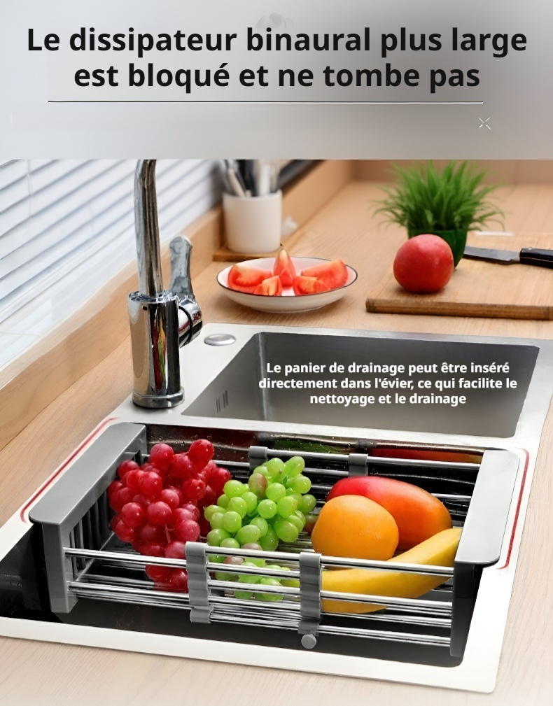 Panier d'égouttage extensible en acier inoxydable pour évier de cuisine